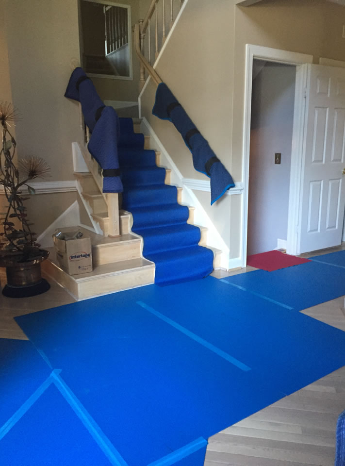 Click here to discover our moving system. As we step into your property, we protect your doors, floors, staircase and railing.